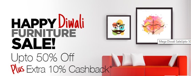 Diwali Sale - Upto 50% Off+10% Cashback happening furniture